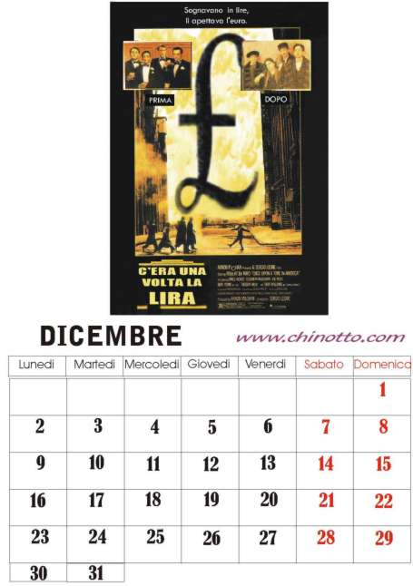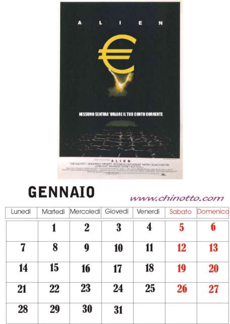 Il calendario, in perfetto stile bancario (e con un chiaro riferimento